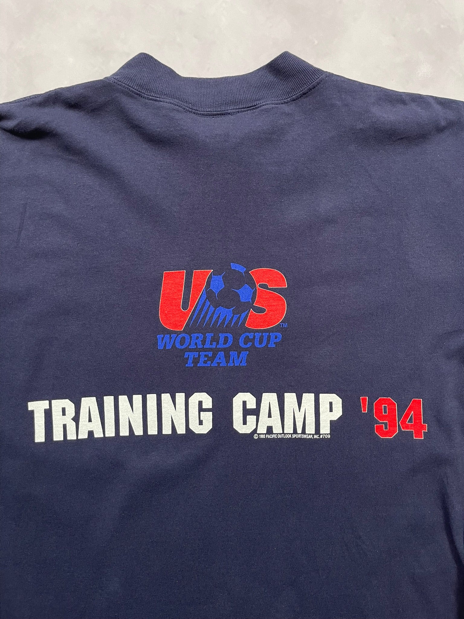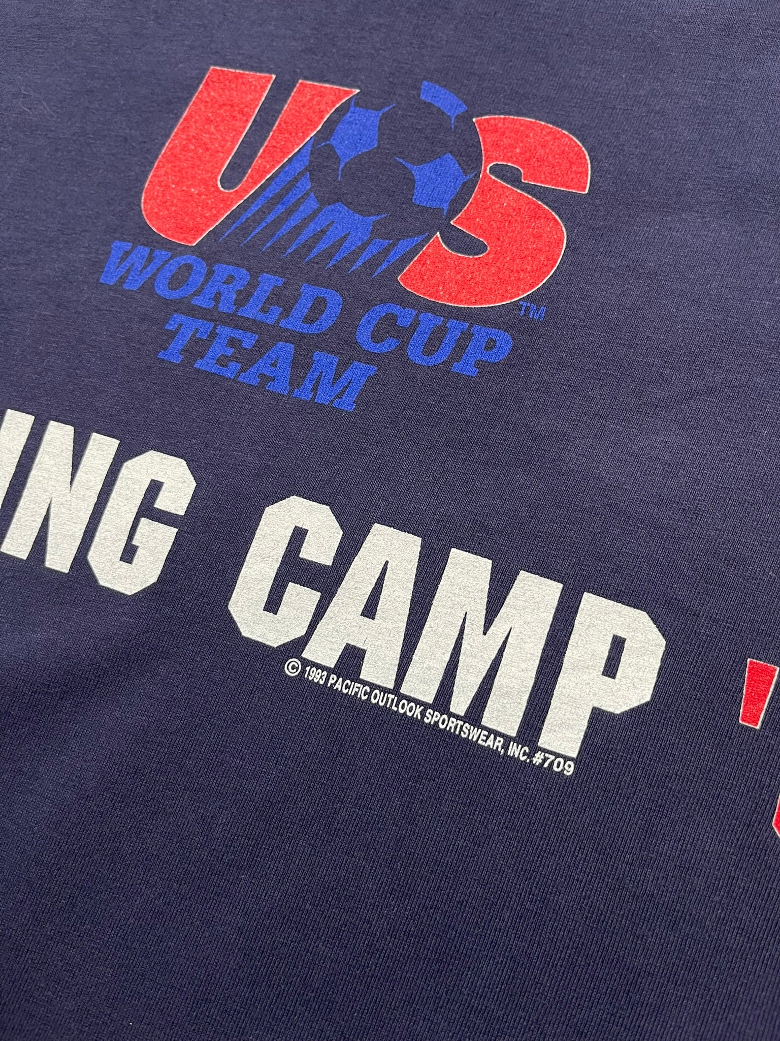 Early ‘90s Team Gear USA long sleeve made for the Mission Viejo World Cup Team — issued for Training Camp '94 ahead of the iconic 1994 FIFA World Cup, hosted on U.S. soil. Bold front hit with varsity-style block lettering, and strong back graphic repping the national squad. Made in USA on a heavyweight cotton blank, this one’s got serious crossover appeal for soccer collectors, 90s sportswear heads, or anyone chasing true World Cup USA 1994 ephemera. Rare to see these survivor pieces still intact.