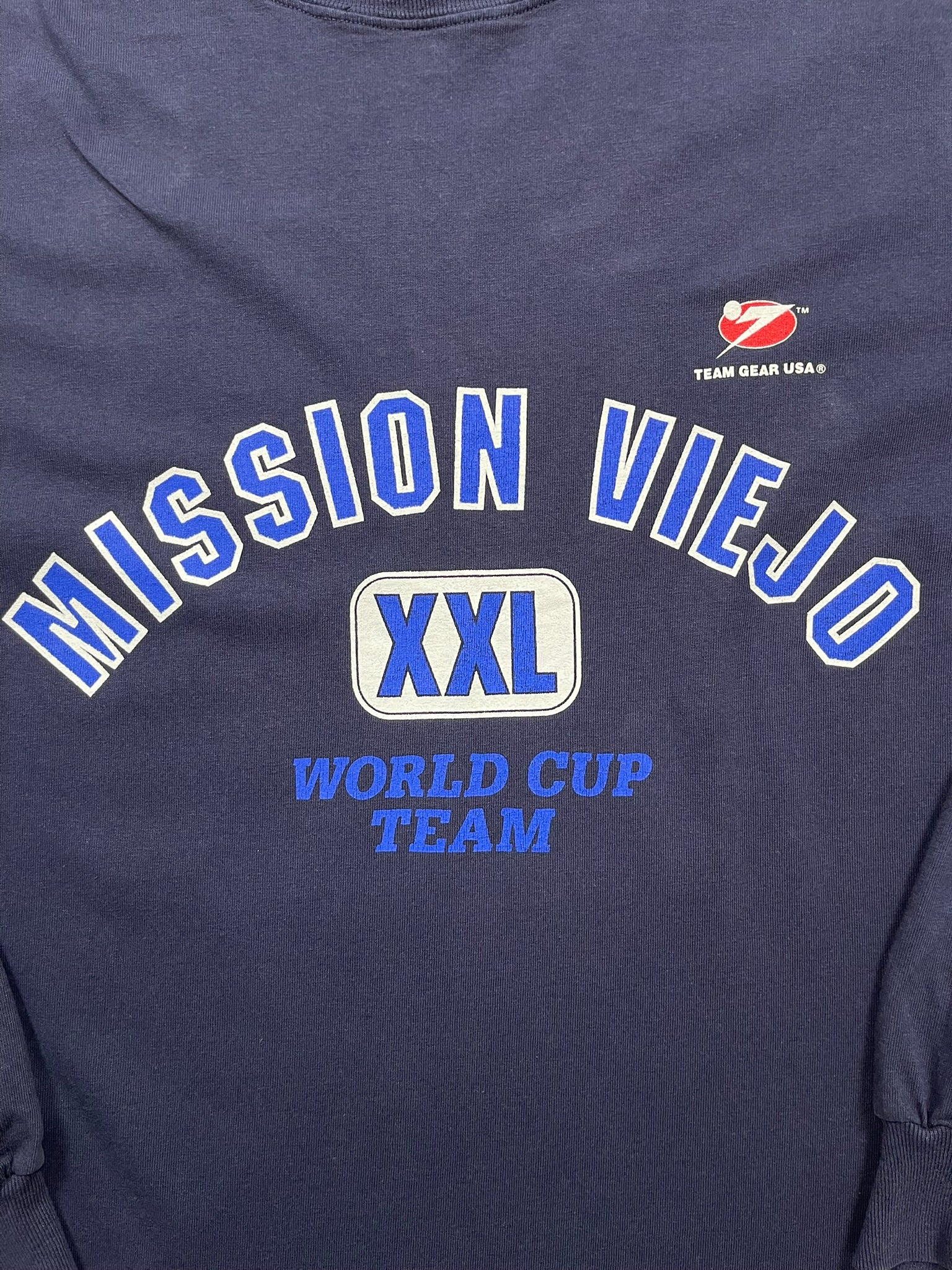 This vintage Mission Viejo World Cup Team Longsleeve in Navy is a tagged size extra-large. (but do check measurements below)