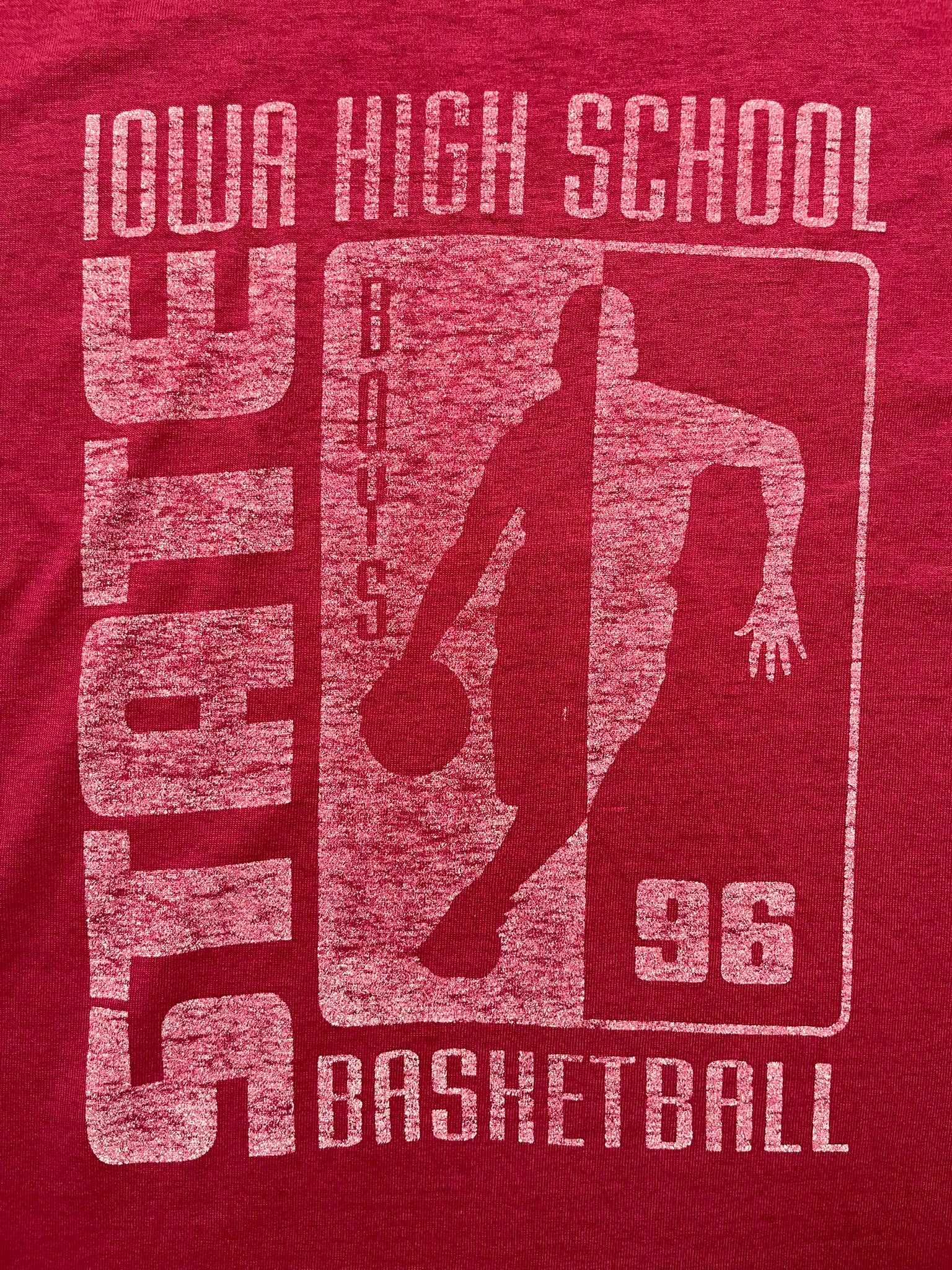This vintage Iowa High School State Basketball in Red is a tagged size extra-large. (but do check measurements below)