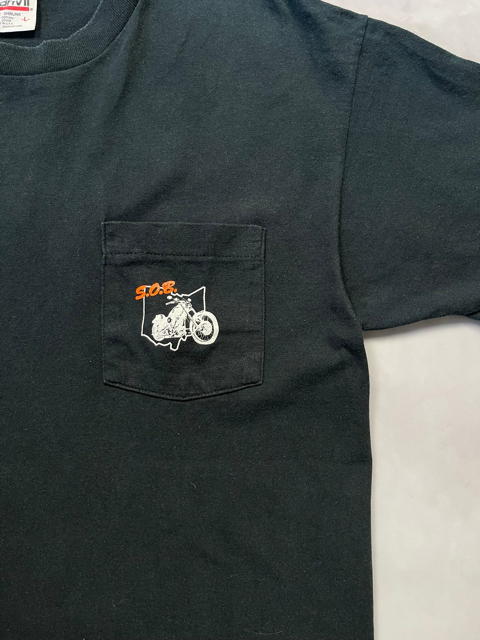 This vintage Southern Ohio Bikers in black is a tagged size large. (but do check measurements below)
