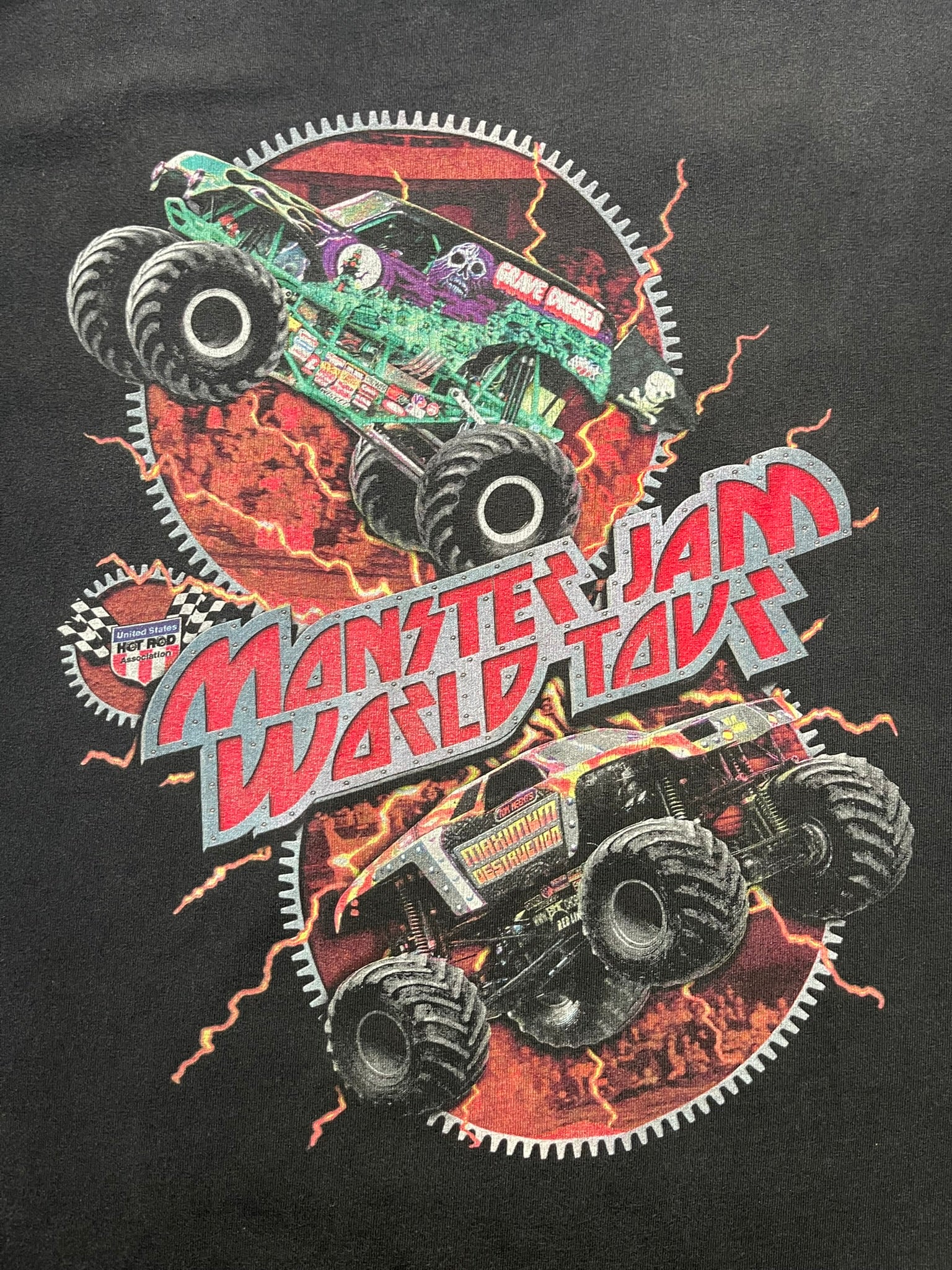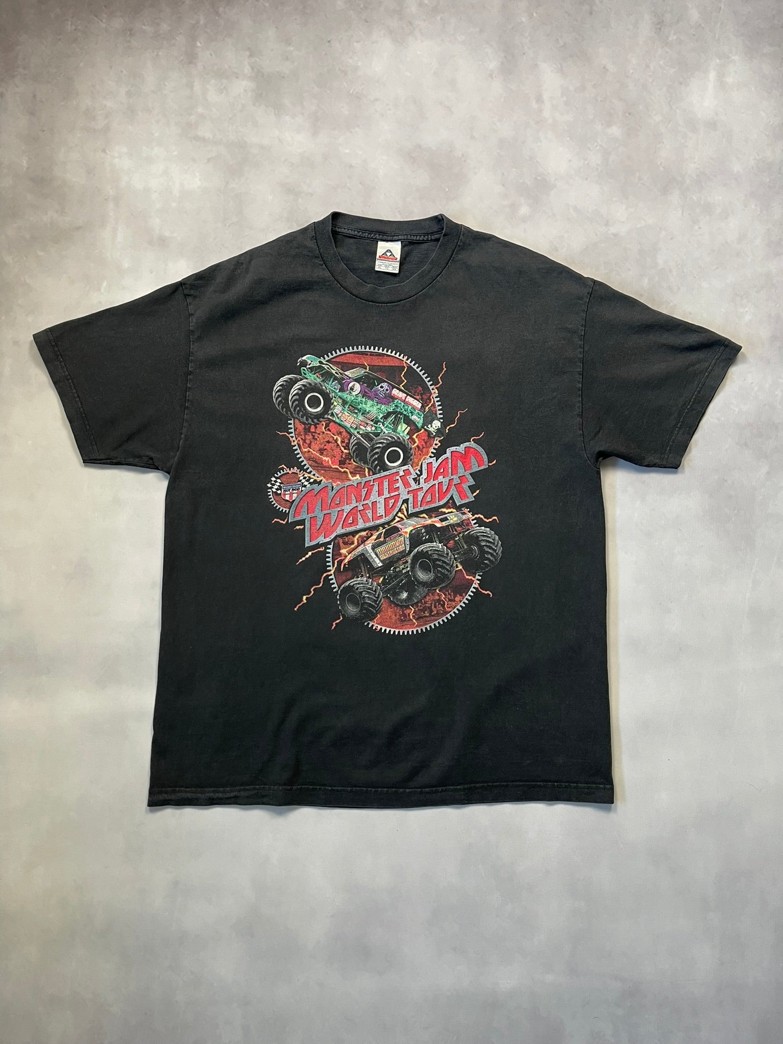 This vintage Monster Jam World Tour in black is a tagged size extra-large. (but do check measurements below)