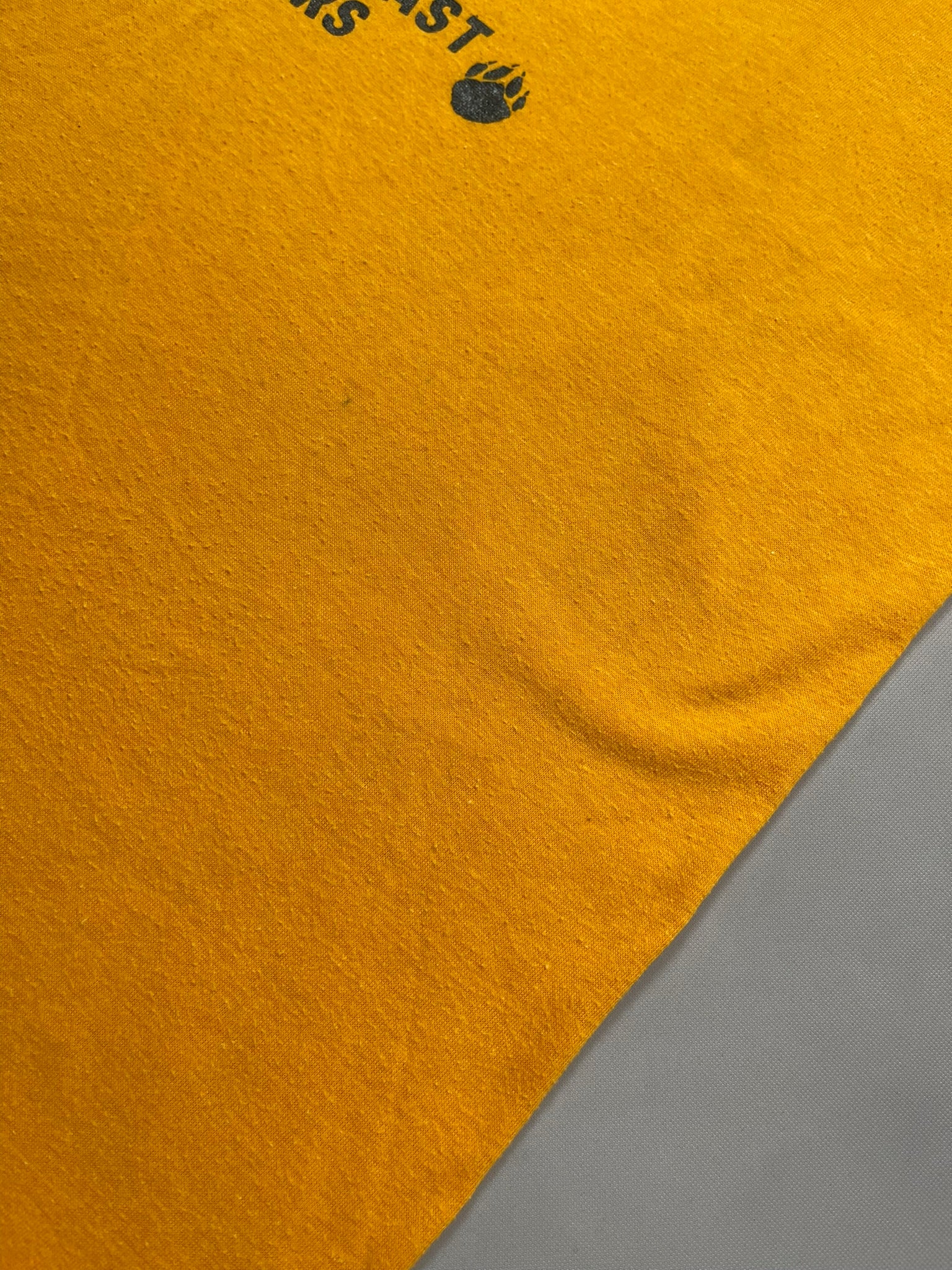 This vintage Mankato East Cougars State Tourney in Yellow is a tagged size extra-large. (but do check measurements below)