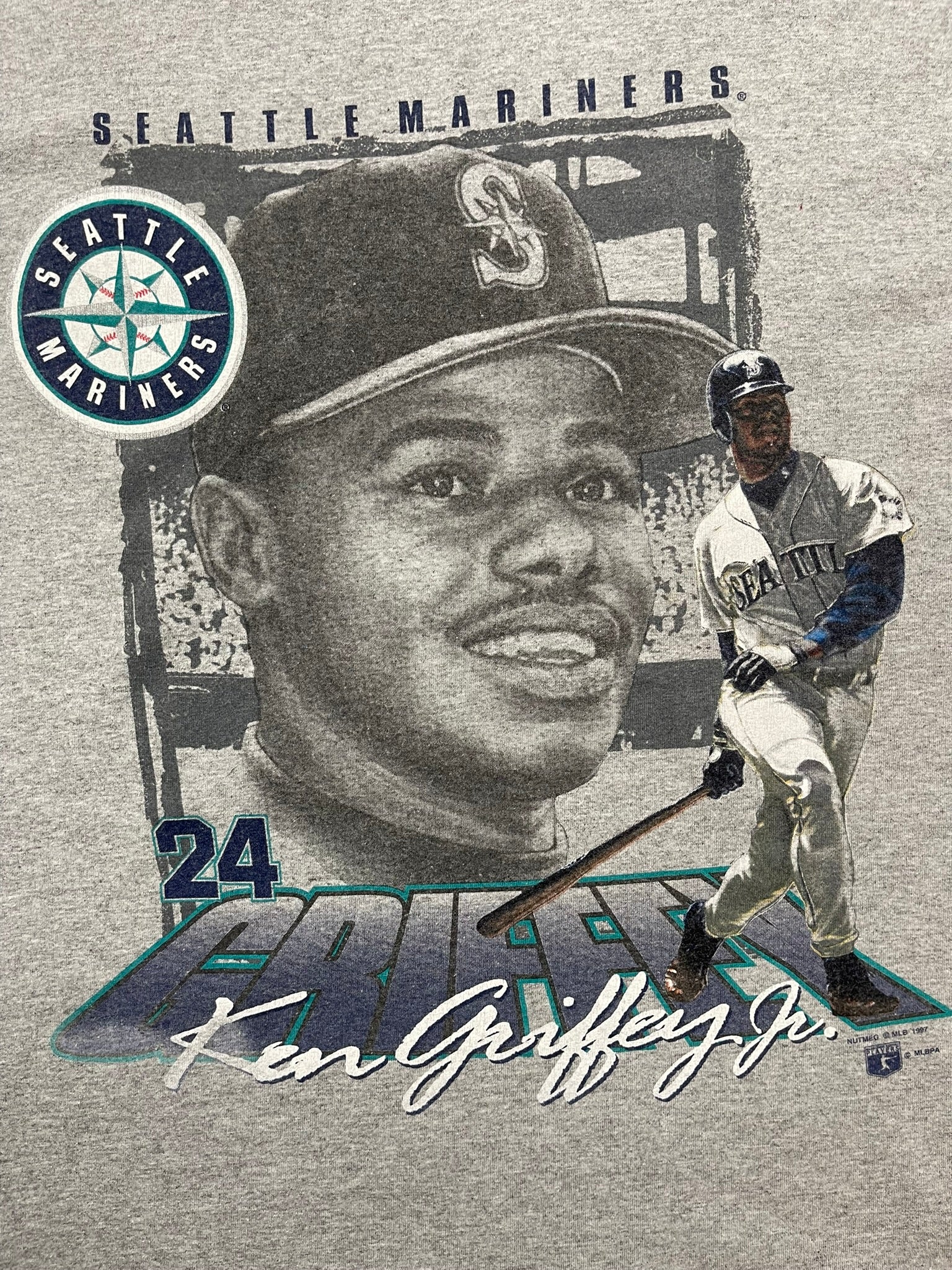 This vintage Ken Griffey Jr. Seattle Mariners in Gray is a tagged size extra-large. (but do check measurements below)