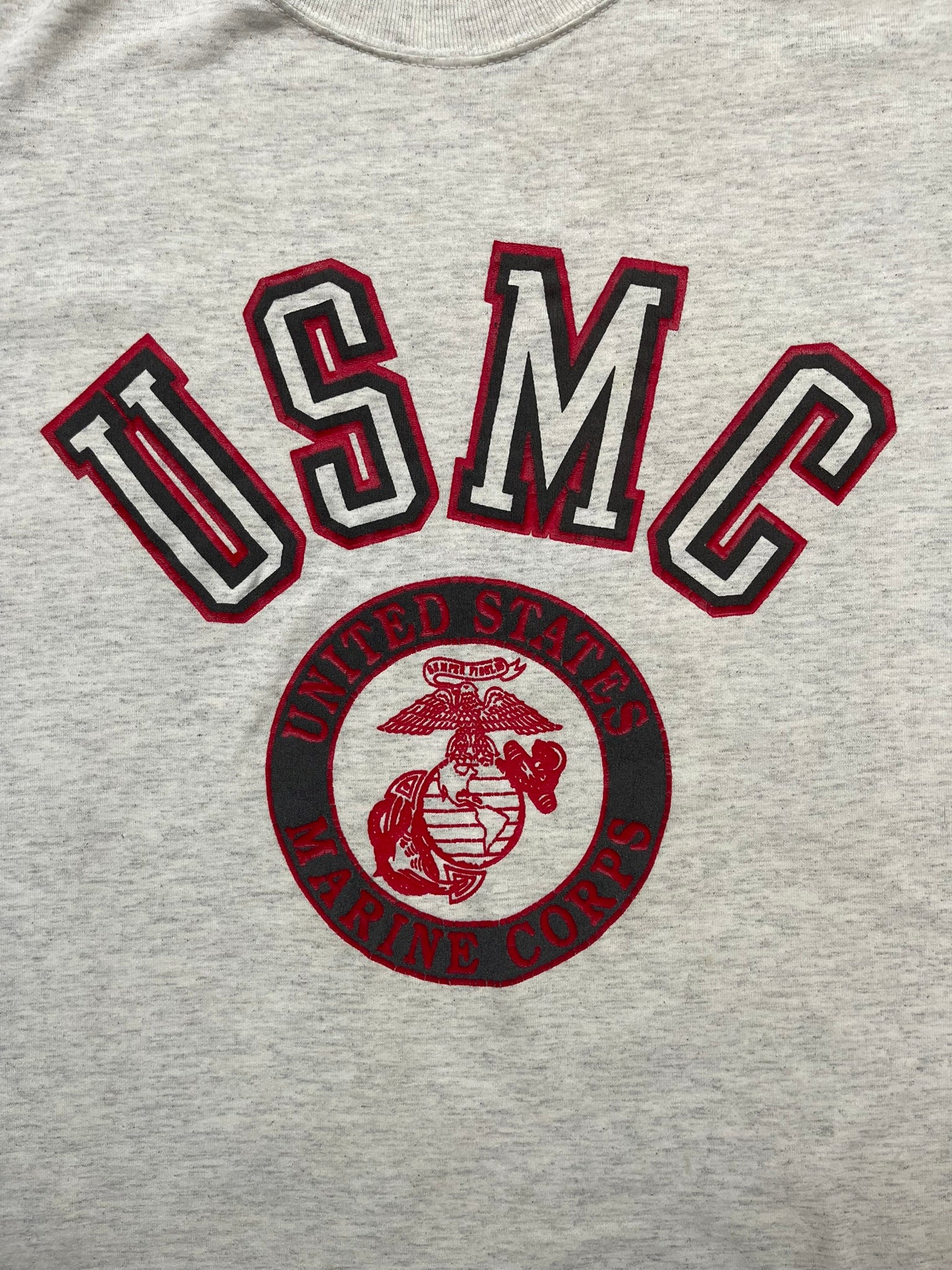 This vintage USMC Marine Corps in Gray is a tagged size large. (but do check measurements below)