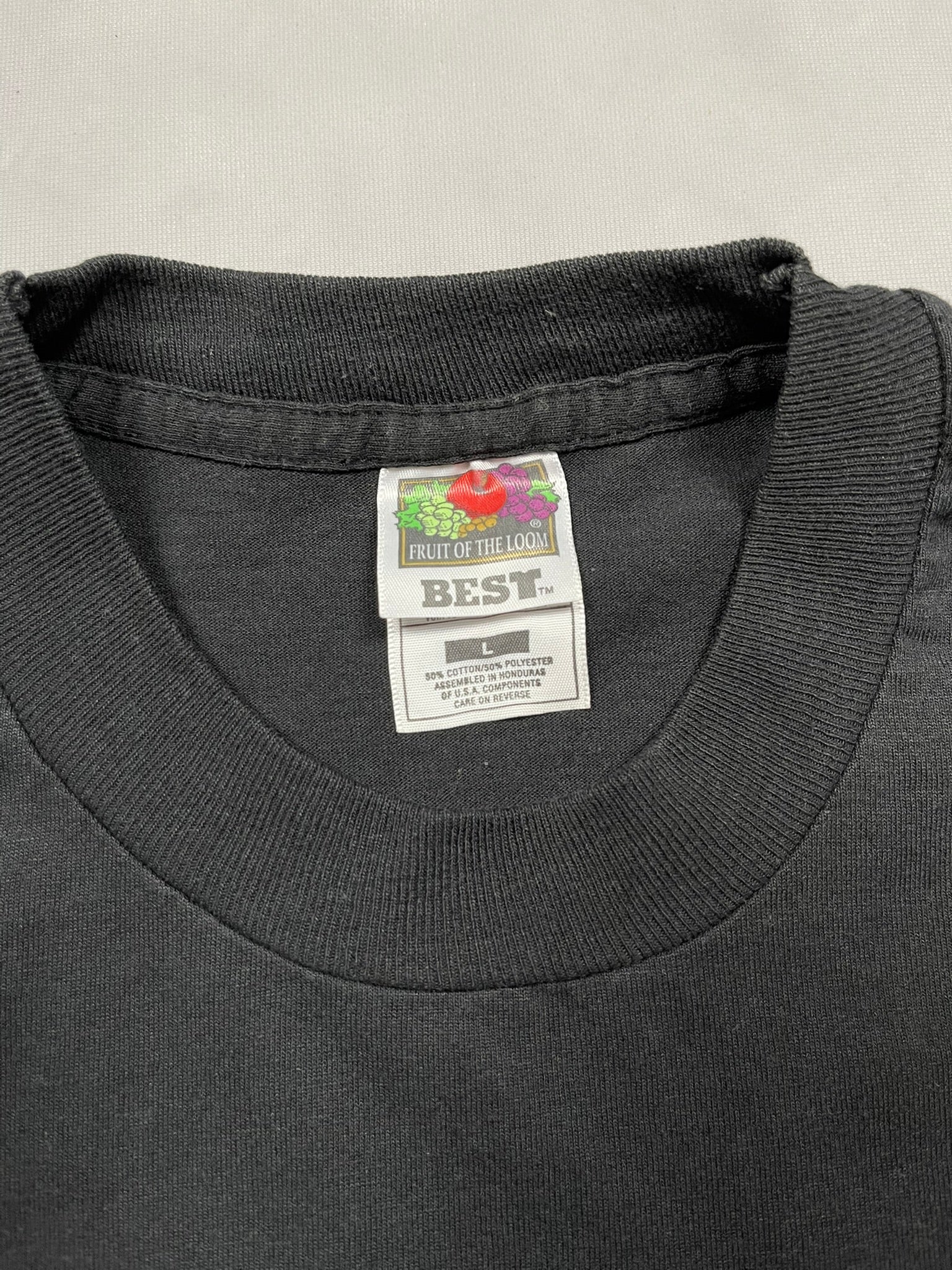 Late 90s to early Y2K Fruit of the Loom BEST tag tee with bold “Dart Bitch” text and a thorny red rose graphic that walks the line between attitude and irony. Likely a custom print or bar league one-off, which makes it a killer sleeper piece for collectors who know. Soft black poly-cotton blend with great shape and clean print hit. Perfect for fans of barwear, novelty tees, or that unapologetic alt look.
